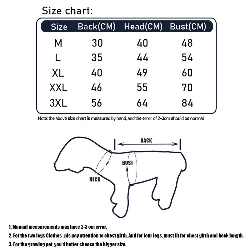 2. For the two legs Clothes , pls pay attention to chest girth, And for four legs, must fit for chest girth and back length.